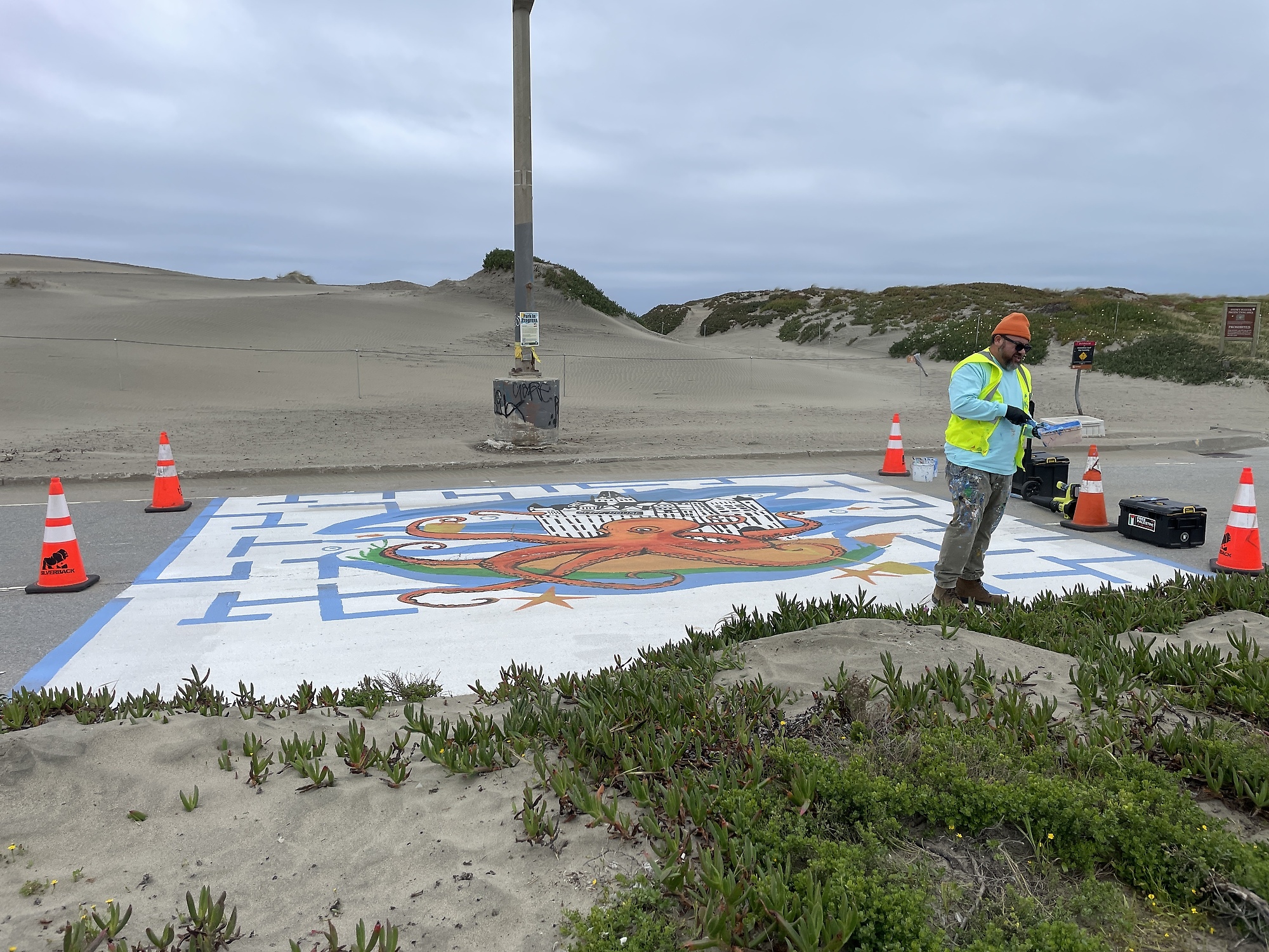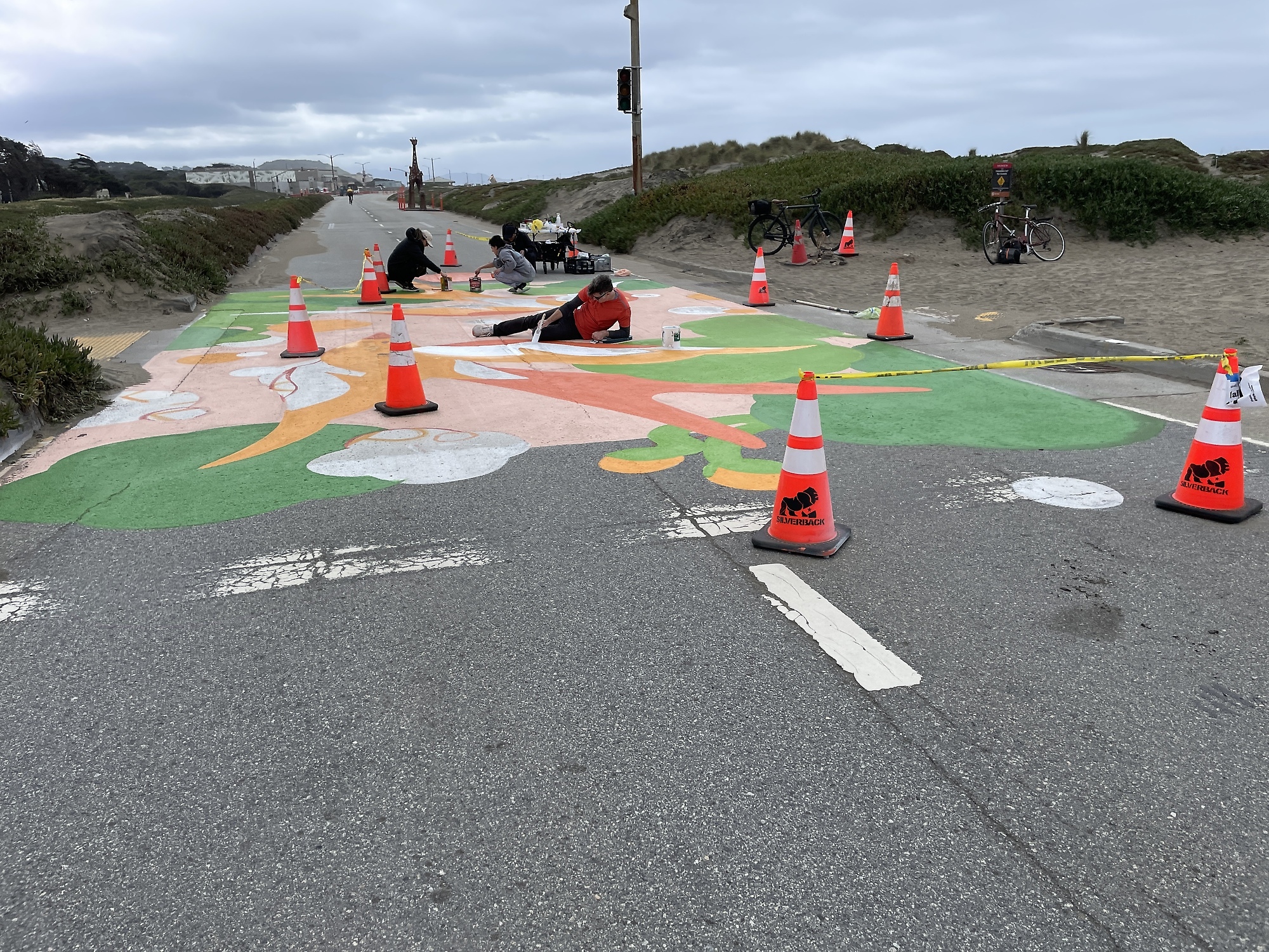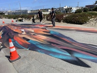 Zur Zeit bedeutet das allerdings nur, dass ein paar Kunstwerke auf die Straße gepinselt wurden. Skulpturen und Fitnessgeräte sollen angeblich folgen. Kunst ist immer gut. Ansonsten plant die Stadt, die Fördergelder des California Coastal Conservancy, eine Million Dollar, zu nutzen, um zu ergründen, wie der neue Park den Verkehr und die Umwelt beeinflusst. Auch wird untersucht, wie das mögliche Ansteigen des Meeresspiegels wiederum den Park beeinträchtigt. Ahhh, das hatten wir doch schon einmal, so schließt sich der Kreis.