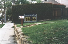 Nun muss man wissen, dass weder in Kalifornien noch in einem anderen amerikanischen Bundesstaat die gleichgeschlechtliche Ehe zur Zeit legalisiert ist, d.h. der Satz ist eigentlich überflüssig. Deshalb glauben Kritiker auch, dass hinter der Knight-Initiative zwei ganz andere Gedankengänge stehen. Einmal befürchtet man, dass andere Bundesstaaten eventuell in nächster Zeit die gleichgeschlechtliche Ehe legalisieren könnten (im Bundesstaat Vermont könnte dies durchaus geschehen) und dann wäre Kalifornien nach jetziger Rechtslage verpflichtet, die z.B. in Vermont geschlossene Ehe zwischen zwei Homosexuellen anzuerkennen. Deshalb die Idee der Knight-Initiative, noch einmal explizit aufzuführen, dass nur eine Ehe zwischen Frau und Mann in Kalifornien Gültigkeit hat. Zweitens befürchten viele, dass die Knight-Initiative sozusagen durch die Hintertür Errungenschaften bekämpfen will, die gleichgeschlechtliche Paare in den meisten Städten Kaliforniens auch ohne staatliche Eheschließung haben, z.B. die Möglichkeit der Adoption von Kindern, oder dass der gleichgeschlechtliche Partner bei der Krankenversicherung wie ein verheirateter Ehepartner gilt (gängige Praxis in allen Firmen des Silicon-Valleys und in San Francisco) sowie Besuchsrechte in Krankenhäusern, d.h. als Familienangehöriger betrachtet zu werden usw. Knight hat übrigens selber einen Sohn, der sich offen zu seiner Homosexualität bekennt, und öffentlich die Initiative seines Vaters bekämpft. Und da kommt dann schon der Verdacht auf, dass der Vater mit der Tatsache nicht umgehen kann, dass der eigene Sohn homosexuell ist. Sehr traurig, das Ganze. Die Knight-Initiative wird finanziell übrigens heftig unterstüzt von der mormonischen Kirche (neben anderen), die bekanntlich in den USA ja sehr wohlhabend ist. Geld spielt nämlich eine entscheidene Rolle, um Volksbegehren durchzubringen. Dieses finanzielle Einmischen kann übrigens durchaus Folgen haben, da die Kirchen weitesgehend der Steuerfreiheit unterliegen. Sie dürfen also nicht aktiv politische Initiativen mit ihren Kirchengeldern finanzieren. Aber das nur so am Rande. Man kann nur hoffen, dass die kalifornischen Wähler gegen die Knight-Initiative stimmen. Wir werden es euch, in unserem nächsten Rundbrief wissen lassen. (Anmerkung der Redaktion: Kurz vor der Drucklegung des Rundbriefes stimmten die Wähler mit 60% für und 40% gegen den Vorschlag. Der Satz wird also in den Gesetzestext aufgenommen.)