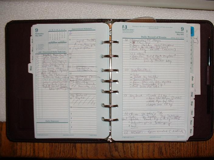(Michael) Bei Netscape lief neulich ein Ganztageskurs über Time-Management, für den ich mich einschrieb. Die Firma "Franklin/Covey" bietet Kurse an, in denen man lernt, wie man das von ihnen angebotene Kalendersystem bedient. Wie man seine Zeit sinnvoll einteilt, Aufgaben priorisiert und Wichtiges von Unwichtigem trennt, um in weniger Zeit mehr zu schaffen. Es war eine eindrucksvolle Vorstellung. Typisch amerikanisch war der Kurs nicht irgendein langweiliger Vortrag, sondern gespickt mit, ja, ich würde sogar sagen, bewegenden Momenten. So etwa, als die Kursleiterin uns aufforderte, anonym auf kleine Kärtchen zu schreiben, was wir denn tun würden, wenn wir mehr Zeit hätten. Später, wir hatten die eingesammelten Kärtchen schon fast vergessen, ließ sie ein Video laufen, in dem dargestellt wurde, wie kurz das Leben sei und wie wichtig es wäre, sich auf die wichtigen Dinge zu konzentrieren. Als das Video endete, wurde der Bildschirm dunkel, aber die Musik lief weiter und sie begann, den Inhalt der Kärtchen vorzulesen. Da standen dann Dinge wie "Wenn ich mehr Zeit hätte, würde ich den Half-Dome im Yosemite-Park erklimmen". "Wenn ich mehr Zeit hätte, würde ich die meistbesuchte Website der Welt konstruieren". "Wenn ich mehr Zeit hätte, würde ich mit meiner Familie ganz Europa bereisen". "Wenn ich mehr Zeit hätte, würde ich einen Science-Fiction-Roman schreiben". Eines der Kärtchen war natürlich von mir und ihr dürft raten, welches. Jedenfalls -- ich war bewegt. Und der Kalender gefiel mir so gut, so dass ich seitdem nur noch mit einem mehr als DIN-A-5 großen Terminplaner herumrenne und alles, ja, alles hineinschreibe. Echt raffiniert, das Teil, ich schaffe mittlerweile wirklich mehr und vergesse nichts mehr, da alles im Kalender steht. Der wesentliche Punkt ist, dass man private Ereignisse nicht von geschäftlichen trennt, der Hochzeitstag oder ein Geburtstagsgeschenk sind also genauso wichtig wie berufliche Vorgänge. Wen's interessiert: Unter http://www.franklincovey.com kann man das Zeug bestellen, ist zwar nicht ganz billig, aber sehr gut gemacht. Natürlich nur geeignet für Leute mit Selbstdisziplin, die sich nicht scheuen, sich nachts um zwölf noch hinzusetzen, um die Taskliste des vergangenen Tages abzuhaken und die Aufgaben für den nächsten Tag durchzugehen, sowie einmal pro Woche einen Wochenplan mit den wichtigsten Zielen zu erstellen. Angelika ist auch gleich auf den Zug aufgesprungen, und fordert den gleichen Kalender, den es nur in einem bestimmten Laden in San Francisco zu kaufen gibt. Leider hat sie diese Aufgabe mangels Kalendersystems noch nicht in eine entsprechende Liste eingetragen, so dass dieses Projekt immer noch seiner Erledigung entgegenharrt, aber sie arbeitet daran ... (Anmerkung der Rundbrief-Redaktion: Zu Angelikas Geburtstag am 2. März lag ein kleines Kalenderlein auf dem Gabentisch ...).