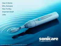 (Michael) Und noch eine aufregende Neuigkeit. Darauf habt ihr alle gewartet. Setzt euch hin. Jetzt kommt's: Wir haben uns eine neue elektrische Zahnbürste gekauft. "Oh mei, oh mei", sagt ihr jetzt sicher, aber es ist wirklich aufregend: Die Firma "Sonicare" fabriziert eine elektrische Zahnbürste, die ihren Bürstenkopf so schnell bewegt, dass Ultraschallwellen entstehen. Habe ich gleich beim Costco gekauft, nur hundert Dollar! Zwei Minuten damit die Zähne geputzt und ihr fühlt euch, als kämt ihr frisch vom Zahnarzt, der euch mit diesem Ding, das immer "iiiihh-iihh-iiiiih" macht, traktiert hätte. Ich schlecke mir den ganzen Tag über die Zähne, so gut ist das. Sofort kaufen! Unter http://www.sonicare.com stehen mehr Informationen.