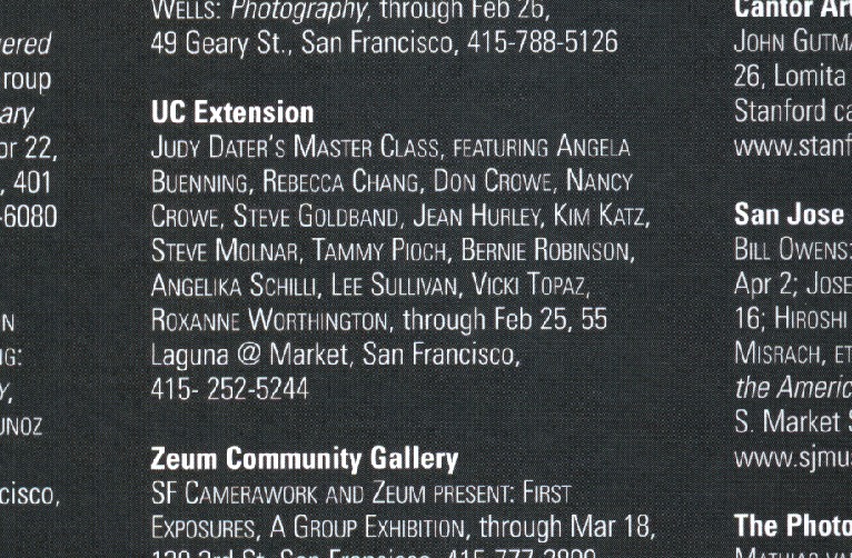 | San Francisco: | SoMa, Mission, Japantown, Chinatown, Noe Valley, Bernal Heights |