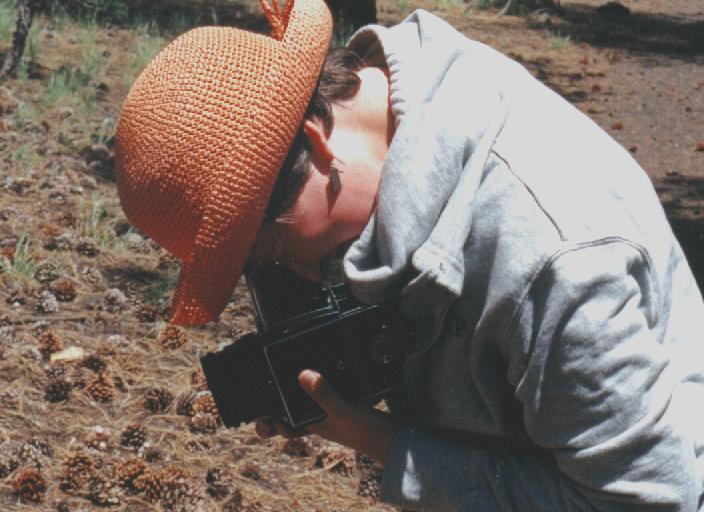 Zuerst kam eine Mamiya 7 dran, eine klobige Sucherkamera, die etwa doppelt so gross wie eine normale Spiegelreflex ist und ein 6 mal 7 Zentimeter großes Negativ hat. Und, beim nächsten Ausflug in den "Lassen Volcanic National Park" war es eine Hasselblad 503, von mir liebevoll "Otzen" genannt. Ihr wisst schon, das sind diese ziegelsteingroßen Kameras aus Schweden, in die man von oben reinkuckt. Zum Filmeinlegen muss man genau die Bedienungsanleitung studieren, dann verschiedene Hebelchen drücken, Schräubchen drehen und Filmspulen hin- und her manövrieren. Unter 5 Minuten geht es kaum. Ein Film hat nur 12 Bilder. Aufgezogen wird der Film nach jedem Bild mit einer altmodischen Kurbel an der Seite der Kamera, an der man, wie an einem Leierkasten, einmal im Kreis dreht.
