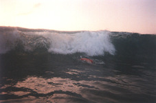 Die Wellen kommen zum Teil sehr gewaltig daher und brechen oft unvermittelt zusammen, so dass man sehr aufpassen und notfalls schnell unterhalb durchtauchen muss. Tut man das nicht, stürzen die Wassermassen auf einen herab und in den nächsten fünf Sekunden wirbelt man ohne jede Kontrollmöglichkeit unter Wasser umher. Das ist nichts für schreckhafte Naturen. Schwimmen ist in diesen Augenblicken unmöglich, die Strömung ist total chaotisch und wild. Dann hilft nur, die Luft anzuhalten, die Arme über dem Kopf zu verschränken, damit man nicht aus Versehen gegen einen Stein oder ein verlorengegangenes Surfboard knallt. Nachdem sich alles wieder gelegt hat, stellt man schnell fest, wo oben und wo unten ist, und taucht auf. Und nicht die nächste ankommende Welle vergessen!