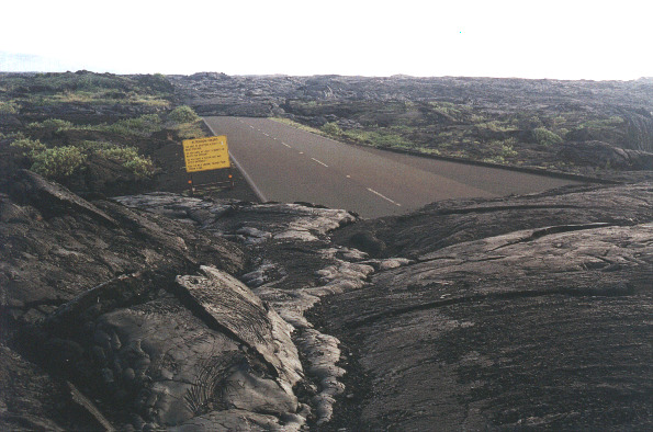 Aber der eigentliche Knüller auf Big Island sind die aktiven Vulkane. Die Insel wurde schon ein paarmal von bösen, blubbernden Lavamassen überrollt. Es gibt Straßen, die die glühende Lava auf dem Weg ins Meer einfach begraben hat und die daraufhin nicht mehr restauriert wurden. Ehemals bewohnte, dann evakuierte Dörfer sind heute Geistersiedlungen. Die Lava, flüssiges Gestein, fließt bei einem Ausbruch sehr langsam, so dass sich die Leute üblicherweise in Sicherheit bringen können, bevor ihre Häuser und Siedlungen unter den Massen begraben werden, die dann langsam zu schwarzem Stein erstarren.