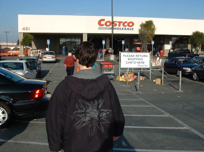 Dies hilft den Leuten hier, die ja viel öfter umziehen als zum Beispiel die Deutschen, sich in neuen Gegenden sofort zurechtzufinden. 5000 Meilen von zu Hause weg, aber wenigstens der Supermarkt erinnert an daheim -- der Mensch braucht Kontinuität. So zögerten wir auch nicht lange (bzw. ich traktierte Angelika so lange, bis sie zustimmte), auch auf Big Island zu unserem (genauergesagt meinem) Super-Supermarkt "Costco" zu gehen. Dort braucht man eine Mitgliedskarte (wie etwa beim "Metro" in Deutschland) und alles gibt's in Riesenpackungen und supergünstig. Und ich bin schier ausgeflippt, als dort ortsübliche T-Shirts mit Hawaii-Design und Surferhosen auslagen! Und das Mineralwasser war nicht "Crystal Geyser" wie daheim sondern hawaiianisches, sonst war alles gleich. Beinahe hätte ich mir das 48-teilige Autoreifenluftdruckset gekauft, aber in letzter Sekunde fiel mir ein, dass wir ja im Urlaub waren. Tja, schon völlig amerikanisiert eben ...