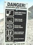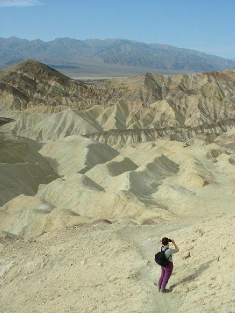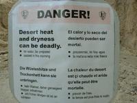 Wie in allen amerikanischen Nationalparks gibt es auch im Death Vaelly jemanden, der schon mal darin umgekommen ist -- und deswegen stehen tausend Warnschilder herum. Diesmal war's ein Österreicher, der sich im Sommer auf einem Weg durch den "Golden Canyon" versuchte, wo's ungefähr 45 Grad im Schatten hatte, und der einen Hitzschlag erlitt. Deswegen die Tafel, die am Wegeingang in typisch deppertem Übersetzerdeutsch warnte (siehe Bild 20): "Die Wüstenhitze und Trockenhett kann sie unbringen. Kein Wasser, daher genuegend Wasser mitnehmen. Am frühen Morgen ist es an kühlsten." Manchmal frage ich mich, woran es liegt, dass es in Amerika Leute gibt, die meinen, sie sprächen deutsch, die aber total hirnrissige Fehler machen. Deutsche Austauschstudenten, meldet euch massenhaft! Aber ich schweife ab. Der "Golden Canyon" besteht aus der Chemikalie "Borax", die man laut Angaben der Ranger für Putzmittel und Kakerlakenvernichtung gebrauchen kann. Demgemäß sieht der Canyon wie eine Kiesgrube aus, nur schöner.