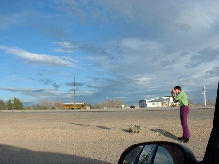Dieses einsame Amerika fasziniert mich immer besonders -- und das Licht spielt so genial wie nirgends sonst auf der Welt. Es sieht fast irreal aus, klickt fleißig auf die Bilder, um sie zu vergrößern. Schon vor fast vierzehn Jahren, als ich das erste Mal die USA bereiste, hat mich diese Weite gepackt und nie mehr losgelassen. Was machen die Leute, die da wohnen? Über zwei Autostunden von der nächsten, einigermaßen großen Stadt weg? Essen die jeden Tag Steak? Sehen jeden Abend fern? Das mit dem Essen war echt furchtbar. Außerhalb Las Vegas mit seiner mittlerweile echt abwechslungsreichen Küche gibt's nur Steakhouses und diese uramerikanischen Restaurants, die man "Diner" nennt. Da sitzt man in sogenannten "Booths", die wie früher die offenenen Eisenbahnabteile in Nahverkehrszügen aussehen. Dicke rote, komfortabel gepolsterte Bänke und jeder Tisch hat sein eigenes Kabüfflein. In San Francisco gibt's nur ein gutes Diner, das heißt übrigens Max's und ich warte stündlich darauf, dass Max Schuster uns besuchen kommt und ich ihn dort hin ausführen kann. Außerdem zwinge ich Angelika alle zwei Monate, zu diesem für San-Francisco-Verhältnisse exotischen Laden zu gehen, damit ich mir einen fettigen Bacon-Burger reinziehen kann, auf dass mir den Rest des Tages schlecht ist. In der Pampa gibt's aber außer Tankstellen und Diners nix anderes -- und das nervt auf die Dauer.