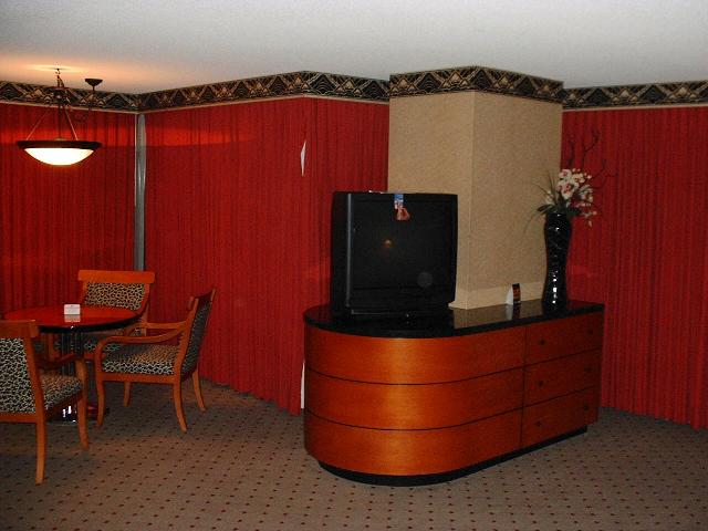 Das Hotelzimmer war die Wucht. Wir zahlten etwa den Preis eines gehobenen Motelzimmers und bekamen eine Luxussuite, die so groß wie unser Apartment in San Francisco war. Im Wohnzimmer war außerdem eine Riesenbadewanne, mit einem Wasserhahn, der wie ein kleines Flüsschen sprudelte (siehe Bild 11). Wenn ihr übrigens im gleichen Raum übernachten wollt, die Zimmernummer ist 534, im sogenannten "New York Tower" im "New York New York".