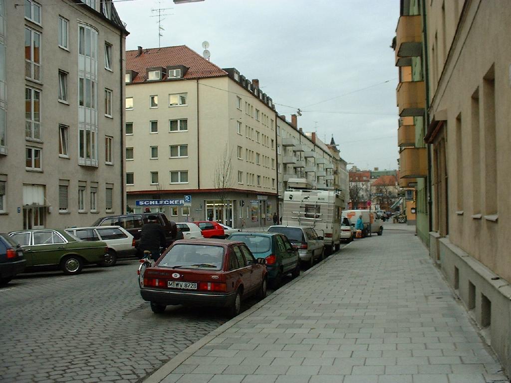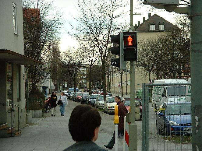 Ich hatte ganz vergessen, welch weitausgedehnte Wohngegenden es in München gibt! In Amerika wohnt ja jeder in Bungalows, 5-stöckige Mietshäuser aus Stein gibt's nirgendwo. In San Francisco habe ich mich schon so an dieses Durcheinander gewöhnt -- der eine streicht sein Haus lila an, der andere hängt eine Regenbogenfahne raus, der dritte hat ein lustiges Schild im Fenster. Allerdings war mir Deutschland viel sauberer in Erinnerung. Ich lache in San Francisco immer vergnügt in mich hinein, wenn mal wieder alte Zeitungsfetzen durch die Straßen wehen und erzähle meinen Arbeitskollegen unentwegt, dass man in Deutschland vom Boden essen kann, so sauber wären die Straßen gekehrt -- und was muss ich feststellen? Alles total vernachlässigt! Schlaglöcher im mittleren Ring in München! Bald werden auch in Laim die Zeitungsfetzen durch die Gassen fegen und lachend werde ich rufen: "Kenn' ich schon, brauch' ich nicht, hab' ich damals schon in San Francisco gesehen!".