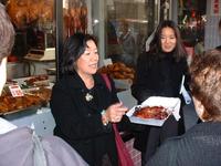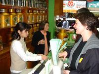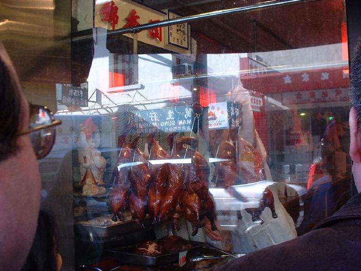 Habt ihr schon mal in Chinatown diese gebratenen Enten im Schaufenster hängen sehen? Die sind schön knusprig braun und Kopf und Füße und alles ist noch dran. Ich hatte im vorletzten Rundbrief ja schonmal geschrieben, dass ich einmal die Woche in so einen Laden gehe, um Entensuppe zu essen. Bei der Tour durften wir uns eine Ente aussuchen, dann gingen wir mit der Fremdenführerin in den Laden hinein, worauf die Ente von der Stange geholt, mit einem Beil in kleine Teile zerlegt und in eine Styroporschachtel verpackt wurde. Die Ente war so saftig, dass es nach allen Seiten gespritzt hat! Auf der Straße aßen wir dann die leckeren Bissen. Ganz schön fett, aber gut! Wir brauchten mehrere Servietten, um die Finger wieder sauber zu kriegen. Puh, jetzt ein schöner Tee gefällig?