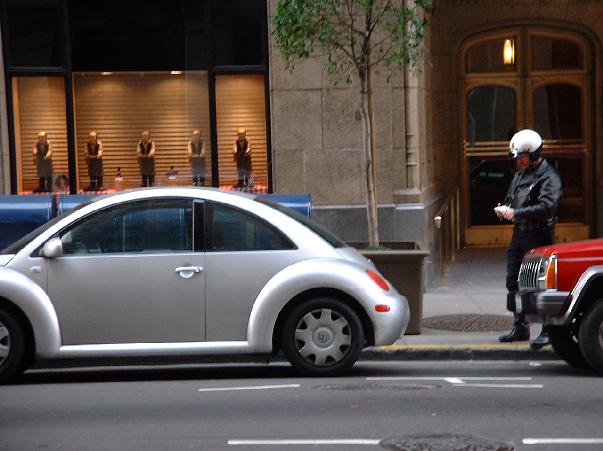 (Michael) Und hier noch das Foto des Monats, gekürt vom Rundbrief-Team: Ein Motorrad-Bulle schreibt einen "New Beetle" auf, der an einer abgelaufenen Parkuhr steht. Ich warte immer noch auf Angebote von der Firma Volkswagen! Angelika konnte leider an diesem Fotowettbewerb, der ab sofort monatlich unter den Rundbriefschreibern ausgetragen wird, wegen ihres Aufenthalts in Deutschland leider nicht teilnehmen, schade, schade! Beim nächsten Mal kriegt sie auch eine Chance!