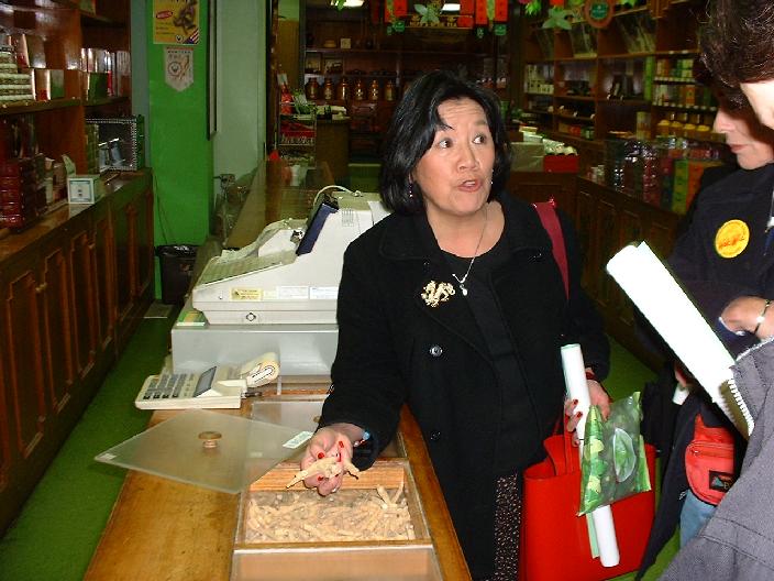 Wir deckten uns im Teeladen gleich mit entsprechendem Material ein, wobei wir nicht den teuersten Tee kaufen konnten, denn der kostete 120 Dollar pro Pfund! Da muss man wohl jahrelang Tee trinken, um diesen Unterschied noch rauszuschmecken. Auch allerhand medizinisches Zeug kann man in Chinatown pfundweise kaufen: Ginsengwurzeln, Haifischflossen, alles und jedes hat seine Bedeutung in der chinesischen Medizin. Angelika kannte mal einen, der ging immer zu einem Doktor nach Chinatown, der dann alles mögliche Zeugs verschrieb. Und es half angeblich bestens!