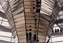 Berlin ist in aller Munde, sogar das amerikanische AAA-Heft (der AAA ist so etwas wie der ADAC in Deutschland, das Heft entspricht der "ADAC-Motorwelt") widmete der deutschen Hauptstadt mehrere Seiten. Während meiner Sturm-und-Drang-Zeit war ich ja öfter mal der Liebe wegen in Berlin. Das war natürlich noch zu Mauerzeiten und auch damals schon faszinierte mich diese Stadt. Schon lange wollte ich dort wieder einmal hin, aber, wie das so ist, wenn man stets nur kurz auf Deutschlandbesuch kommt, bleibt für solche Exkursionen keine Zeit. Da Berlin aber in vier Stunden mit dem Zug von Oldenburg problemlos zu erreichen ist, haben es meine Mutter und ich den Amerikanern nachgemacht, die Europa in 14 Tage bereisen und sind für zwei Tage nach Berlin gefahren. Ich kann das nur jedem Rundbriefleser wärmstens empfehlen. Berlin ist nicht nur in Bewegung sondern auch im Umbruch, zahlreiche Baustellen belegen das immer noch. Natürlich absolvierten wir auch das Standardtouristenprogramm: Reichstag (die neue Kuppel ist eine Freude für jeden, der gern fotografiert), Brandenburger Tor (das gerade in T-Online-Reklame eingehüllt ist, weil es renoviert wird), Unter den Linden, Friedrichstraße, Berliner Dom, Museumsinsel, Hackesche Höfe, Potsdamer Platz, Neue Synagoge. Aber wir sind auch einfach nur so durch die Straßen geschlendert. Angezogen haben mich dabei vor allem die Gegensätze. Oft steht ein frischrenoviertes Haus neben einem vom Einsturz bedrohten. Gerade weil vieles in Berlin so fragwürdig ist, nähert man sich ihr ähnlich wie New York: Entweder man liebt diese Stadt oder man hasst sie. Der neugestaltete Potsdamer Platz, der hypermodern wie aus einem Science-Fiction-Film anmutet, ist zum Beispiel so ein diskussionswürdiges Projekt. Auch ist zu fragen, ob es denn richtig war, dass gar kein Stück Mauer mehr stehengeblieben ist direkt hinter dem Reichstag. Ich hatte wirklich Mühe, mir vorzustellen, wo die Mauer eigentlich genau entlang gelaufen ist. Voll des Lobes bin ich allerdings über die bunte Vielzahl von Restaurants, Kneipen und Cafes. Und da in Berlin nicht gerade das wärmste Wetter war und ich außerdem noch ein wenig San-Francisco-Wetter in den Knochen hatte, also ständig fror, haben meine Mutter und ich reichhaltigen Gebrauch von diesen Angeboten gemacht.