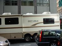 (Michael) In San Francisco werden erwartungsgemäß viele Filme gedreht. Es ist ja auch eine der schönsten Städte der Welt, und außerdem gibt's hier diese irre steilen Straßen. Neulich habe ich herausgefunden, dass zwei davon die rekordverdächtige Steigungsrate von 31.5% aufweisen: Die Filbert-Street, die parallel zur berühmten geschwungenen Lombard-Street verläuft, und die 22. Straße, die gleich bei uns um die Ecke steil abfällt. Bei den schönen alten viktorianischen Häusern und den urigen Stadtvierteln ist es also kein Wunder, dass hier viele Filme gedreht werden. Auf Anhieb fallen mir folgende Produktionen ein: Ms. Doubtfire und Dirty Harry. In letzerem (irgendwann in den 70ern gedreht) scheuchte Dirty Harry zu meinem Erstaunen einen Schurken eine Seitenstraße namens "Osgood Place" im Stadtteil North Beach hoch. Osgood Place -- wo die Niederlassung der Firma "Blaxxun Interactive" war, mit der ich damals nach San Francisco kam! Mann, das waren noch Zeiten! Egal -- aber worauf ich eigentlich hinaus wollte, war, dass in San Francisco alle näslang Filme gedreht werden und irgendwo immer irgendwelche Straßen abgesperrt werden, damit die Filmteams ihre Knutschszenen, Schießereien und Autoverfolgungsjagden drehen können. Die Filmstars halten sich dabei in Wohnwagen auf. Wie Abbildung 13 zeigt, gibt es sogar Firmen, die sich auf die Ausstattung solcher Wohnwagen spezialisieren. Sollte ich mal von Fernsehshow zu Fernsehshow reisen müssen, kaufe ich mir auch so ein Teil.
