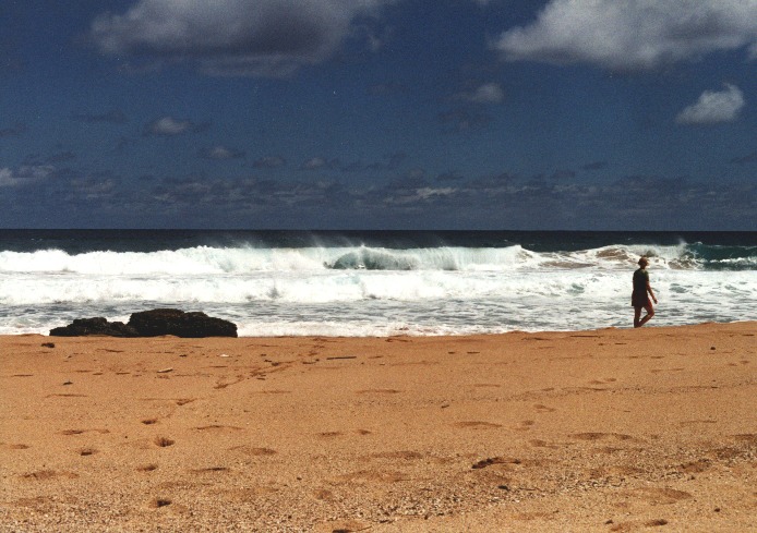 (Angelika) Nach diesen unsicheren und aufregenden Zeiten sind wir deshalb ersteinmal kurzentschlossen für eine Woche nach Hawaii geflogen. Wir hatten uns für die eine Woche die Insel Kauai ausgesucht, da diese als nicht so touristisch gilt. Und es war wirklich paradiesisch schön: lange weiße Sandstrände, tolles Wetter, ein Ozean mit warmem Wasser und guten Wellen, üppig grüne Vegetation, eine phantastische Landschaft, ein nettes Hotel und freundliche Insulaner. Michael hat sich natürlich im Surfen versucht, ist aber doch an den Wellen gescheitert, was ihn besonders frustriert hat, da die zwölfjährigen Jungs mit Leichtigkeit die Wellen genommen haben. Ich war hingegen froh, dass ich nicht David Hasselhof von Baywatch zum Retten holen musste. Und ich sage euch, dass sah schon manchmal ziemlich gefährlich aus, wenn Michael von den Wellen herumgewirbelt wurde.