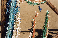 Visitors are allowed to drive their cars along the dusty roads of the camp. And although there are hardly any buildings left to see, visitors can sense what the internees went through here. Wooden signs mark the positions of the barracks. They are so close together that it doesn't take much imagination to envision the cramped conditions. Upon reaching the cemetery, we notice the colorful folded cranes strung on chains. We learn their significance only later. In Japan, there is a belief that if you fold 1,000 cranes, you are granted a wish that will come true. Today, the symbol of the 1,000 cranes also represents a wish for peace: After the atomic bomb was dropped on Hiroshima, a Japanese girl named Sadako developed leukemia. She began folding cranes to wish for health but died before she could complete the 1,000 cranes. As a result, many projects were initiated in her name to create lasting peace in the world.