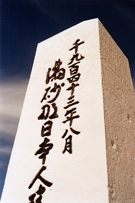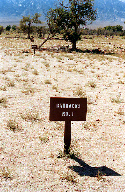 Wir fahren durch die unendliche Weite Kaliforniens. Auf dem Highway 395 geht es in Richtung Süden nach Lone Pine ab. Rechts erheben sich die Bergketten der Sierra Nevada. Es würde uns nicht wundern, wenn hinter der nächsten Kuppe ein Cowboy mit seinem Pferd auftauchte und der Sonne entgegenritte. Dies ist das Land der Diners, der Steaks und des dünnen Kaffees -- und der atemberaubenden Landschaft. Ein Wild-West-Klischee. Auch die Hitze passt ins Bild. Doch kurz hinter dem Ort "Independence" verblasst der Mythos der Malboro-Werbung. Wir nähern uns der Gedenkstätte "Manzanar". Hier internierte die amerikanische Regierung unter Präsident Franklin D. Roosevelt während des zweiten Weltkrieges bis zu 10000 Menschen japanischer Abstammung, viele davon mit einem amerikanischen Pass.