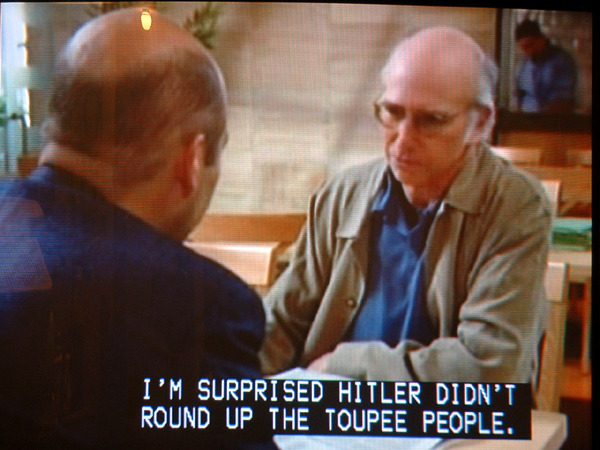 Und es werden Parallelen zu Seinfeld klar: Der glatzköpfige Larry David, der sehr unter seiner Haarlosigkeit leidet, steckt klar hinter der Figur "George" im Seinfeld. Übrigens erinnert die Titelmusik "Diddeldi-didaddeldadi-dididdeldedi-Wui-Bah!" stark an die von mir sehr geliebte Müncher Serie "Monaco Franze". Zufall?