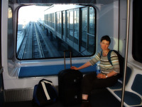 Angelika And here is local news from San Francisco again! After 30 years of debating and planning, the first subway, popularly known as BART (Bay Area Rapid Transportation System), finally ran on a newly constructed route to San Francisco's airport, SFO, at the end of June. This may seem a bit backward to you Europeans. However, those who have traveled extensively in the USA know that even major airports often lack a subway connection to the city center, let alone cities having a reasonable public transportation system. Thus, the San Francisco model is considered groundbreaking. As in most American cities, the only options to reach the airport until now were by taxi, private car, or the so-called "Door-to-Door Shuttle."