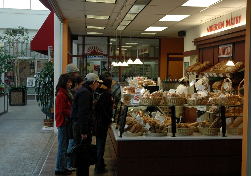 Wenn ihr noch Lust auf etwas Süßes oder Brot im deutschen Stil habt, schlendert zum Abschluß bei der "Andersen Bakery" (Rundbrief 12/2003) vorbei. Der Ableger der Bäckerei aus Hiroshima, die dort von einem Dänen gegründet wurde, wartet zwar nicht mit japanischen Delikatessen auf, aber beim Betrachten der Backwaren denken wir immer, wir stehen in einem deutschen Bäckerladen (nur ohne die Brötchen). Andersens Käsekuchen ist unschlagbar gut.