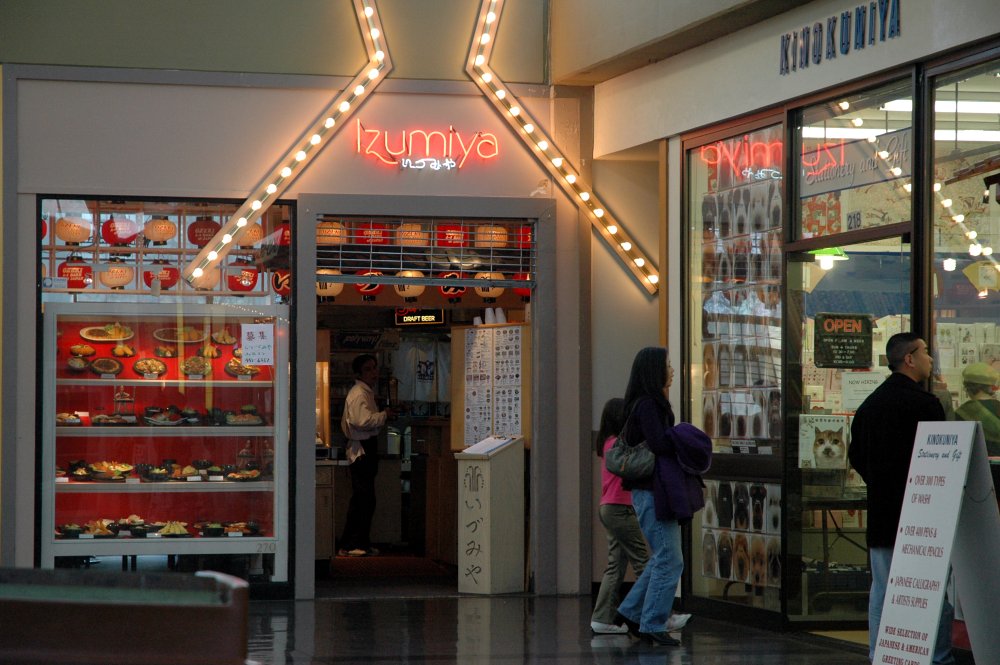 Ist die Schlange vor dem "Mifune" einmal wieder zu lang, schlendern wir weiter zum "Sapporo-Ya", dessen Spezialität in der Suppe Ramen- Nudeln (mehr der chinesischen Art angelehnt) sind. Ins "Isobune" führen wir unsere Gäste aus, die sich selber noch als Sushi- Anfänger bezeichnen. Denn im "Isobune" schwimmt das Sushi in kleinen Booten platziert direkt vor der eigenen Nase vorbei -- immer im Kreis herum. Man sieht also, was man isst und nimmt sich einfach das Tellerchen vom Boot runter, dessen Sushi man sich zu verzehren traut. Die Sushi-Chefs stehen in der Mitte und bereiten in rasender Geschwindigkeit und mit großer Fingerfertigkeit die rohen Fischspezialitäten auf Reis zu. Viele Insider in San Francisco meinen, dass die Qualität des Sushis im "Isobune" eher durchschnittlich ist. Spaß macht der Laden trotzdem.