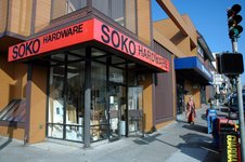 Trotzdem findet man auch heute noch Geschäfte in Japantown, die schon seit Generationen in Familienbesitz sind. "Soko Hardware" ist eines davon. Hier findet ihr nicht nur typische Heimwerker-Artikel wie Kabel, Werkzeuge und Farbtöpfe sondern auch originelle japanische Waren wie Reiskocher, Sushi-Messer, Tatami-Matten und japanisches Geschirr. Über Monate war dort im Schaufenster eine Hightech-Toilette ausgestellt, die wir schon von unser Japanreise kannten (Rundbrief 06/2002). Michael war hin und weg und liebäugelte damit, sie zu kaufen. Ich konnte ihn nur mit Mühe davon abhalten.