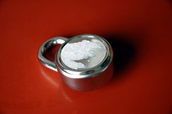 Nehmt zum Beispiel das Vorhängeschloss in Abbildung 20. Da war hinten ein Aufkleber mit der Nummernkombination drauf, und der ging nicht ganz ab. Ein bisschen "Goo Gone" draufgesprüht, ein paar Minuten gewartet, und schon ging's wie von selbst. Zurück blieb nichts als ansprechend glänzendes Metall und ein Mandarinen-Nuss-Cocktail in der Luft. Hmmm.