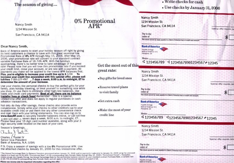 Abbildung [12]: Die Kreditkartenfirma bietet einen günstigen Zinssatz an und liefert die Schecks gleich mit