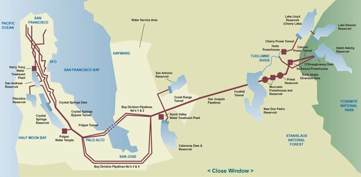 Michael We have often mentioned that it won't rain a drop in San Francisco between March and October. This raises the question: Where do the city and the surrounding areas get enough fresh water to survive?