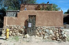 Das Beste sind aber die Adobehäuser, die das Stadtbild dominieren, denn die Stadt hat die Auflage, dass auch neue Häuser im alten Adobestil gebaut werden müssen. Adobe bedeutet "Lehm", und die Häuser bestehen aus Lehmziegeln (hergestellt aus Lehm, Wasser und Stroh), die zunächst zu einer Mauer aufgeschichtet werden. Dann schmiert der Maurer einen rötlich-brauner Putz darauf, verteilt ihn großzügig, und polstert so all alle Ecken aus, dass das Ganze aussieht wie ein bespanntes Sofa.