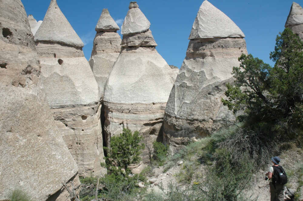 Überhaupt fuhren wir in New Mexico auf mancher ungeteerten Straße, um zum Wandern in abgelegene Parks zu gelangen. Wer bizarre Gesteinsformationen und schmale Canyons mag, sollte die so genannten Tent Rocks (offiziell "Kasha-Katuwe Tent Rocks National Monument"), nicht verpassen. Die Formationen erinnern an Zelte, deshalb der Name.