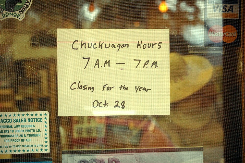 Der Capitol Reef National Park ist übrigens ganzjährig geöffnet. Wir fragten uns bloß, wie man im Winter noch etwas zu essen kriegt. Denn nicht nur, dass ein Restaurant nach dem anderen Ende Oktober zumachte, sondern auch der Krämerladen klappte die Bordsteine hoch und sogar einige Motels schlossen ihre Tore bis zum Frühling. Der Ober in einem der noch offenen Restaurants sagte dann auch, dass Torrey, der kleine Ort, in dem man unterkommt, wenn man den Park besucht, im Winter einer Geisterstadt gleicht.