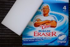 Ich bin ja bekanntlich nicht so der Putzteufel, aber eines macht mich wahnsinnig: Schwarze Schlieren an weißen Wänden, die scheinbar aus dem Nichts auftauchen. Der Magic Eraser von Mr. Clean bereitet ihnen den Garaus. Das ist so ein weißes Schwämmchen, das man einfach nass macht und mit ihm ein bisschen über die Schlieren wischt, und weg sind sie. Eraser bedeutet übrigens Radiergummi, ein super Name für dieses Produkt. Angeblich entfernt der Magic Eraser allen möglichen Schmutz, das habe ich aber noch nicht ausprobiert. Mir reichen die Wände.