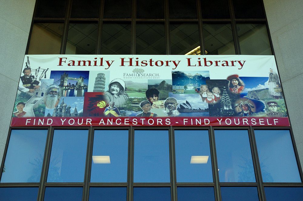 In der von der Mormonenkirche betriebenen Bücherei finden sich hunderte von Computerterminals, die jedermann offenstehen, man muss kein Mormone sein. Wir ließen uns zunächst einen Einführungsfilm vorführen, um dann von einer freundlichen Helferin an einen Computer geleitet zu werden.