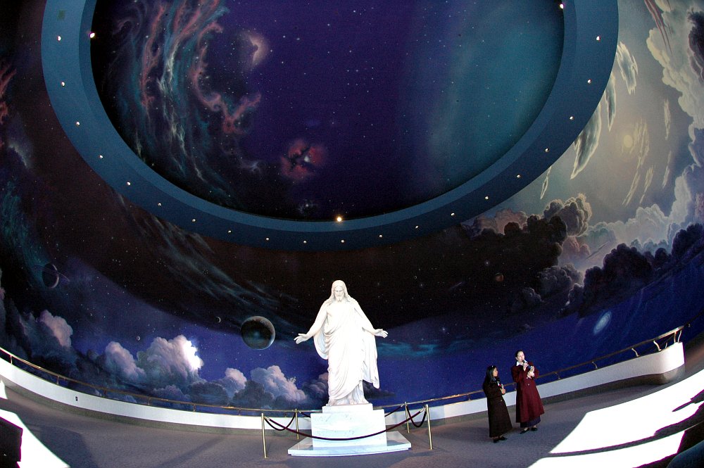 Aber wir durften an einer Führung teilnehmen, zwar nicht hinein in den Tempel (der ist Members-only) aber doch ins Besucherzentrum, wo wir im Kuppelsaal die Stimme von Jesus Christus vorgespielt bekamen.