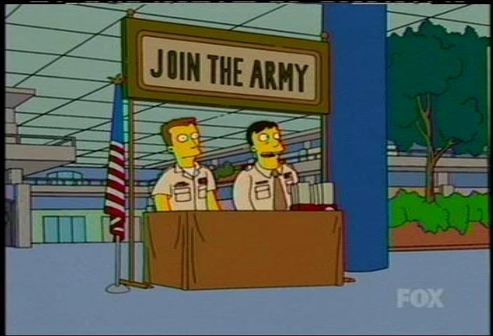 Michael Neulich schaute ich mir wie gewohnt die neueste Folge von "The Simpsons" an und traute meinen Augen nicht: Dort wurde doch tatsächlich die US Army veräppelt, die momentan wegen der desolaten Situation im Irak arge Probleme hat, neue Rekruten anzuwerben.