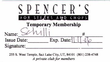 Dabei wird in Utah streng zwischen Bars und Speiselokalen unterschieden. Serviert ein Etablissement kein Essen, erhält der Laden nur eine Lizenz als "Private Club". Und in dem muss man "Mitglied" werden, bevor man dort einkehren darf. So geschehen im "Spencer's Steak and Chops", ein Speiselokal mit angeschlossener Bar, wo Angelika und ich zum Schlagerpreis von $4 eine dreiwöchige temporäre Mitgliedschaft erhielten, damit wir die legendären Steaks nebst zwei Gläsern Wein/Bier probieren konnten. Die Steaks (sehr zu empfehlen: das 12 Oz. New York Strip Steak zu $34) waren aber auch wirklich erstklassig, das muss sogar ich als Grillmeister zugeben. Insgesamt hat Utah etwa 300 dieser "Private Clubs".