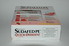 Michael Als Pendant zum Toppprodukt stellen wir heute auch ein Schrottprodukt vor: Das Rachenpflaster "Sudafed PE". "Sudafed" ist in Amerika ja die Standardmedizin gegen verstopfte Nebenhöhlen, und das Zeug ist wirklich gut, damit habe ich schon mal eine Nebenhöhlenentzündung weggeblasen, um in Australien auf einen Tauchkurs zu gehen. Neulich hatte ich eine Erkältung, wollte in der Drogerie ein Sudafed kaufen, da fiel mir "Sudafed PE" auf. Es enthält angeblich denselben Wirkstoff, nur als Gaumentesafilm, wie schon mal im Rundbrief 03/2003 besprochen.