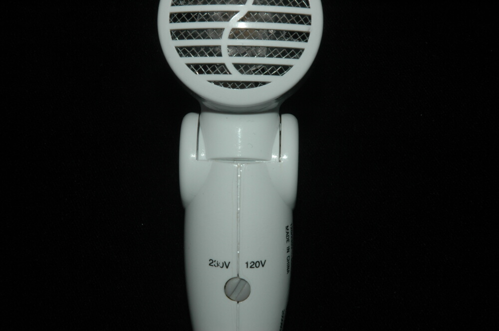 In Abbildung 18 seht ihr unseren Reiseföhn, der sich mittels einer in einen Schlitz gesteckten Münze von 230V (220 oder 230V, so genau geht's nicht) auf 110V umstellen lässt. Wer dies tut, kann den Föhn (einen entsprechenden Steckeradapter vorausgesetzt) ohne Probleme in den USA betreiben. Vergisst man allerdings, den Schalter in Deutschland wieder zurückzustellen, zerreißt's das Teil unter Umständen in tausend Fetzen, falls man es unter 220V ins deutsche Stromnetz einstöpselt.