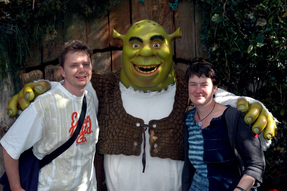Drinnen im Park kann man entweder weitere Souvenirs kaufen, Fastfood essen oder eine der Disney-artigen Shows besuchen oder in Motiv-Achterbahnen herumfahren. Wir wollten nur die Studio-Tour machen, bei der man mit einem Tourmobil und einem Alleinunterhalter an den verschiedenen Gebäuden vorbeifährt, auf denen "Stage 23" steht und später kommt "Stage 24" und weiter hinten kommt noch ein grauer Betonklotz, auf dem steht "Stage 25".