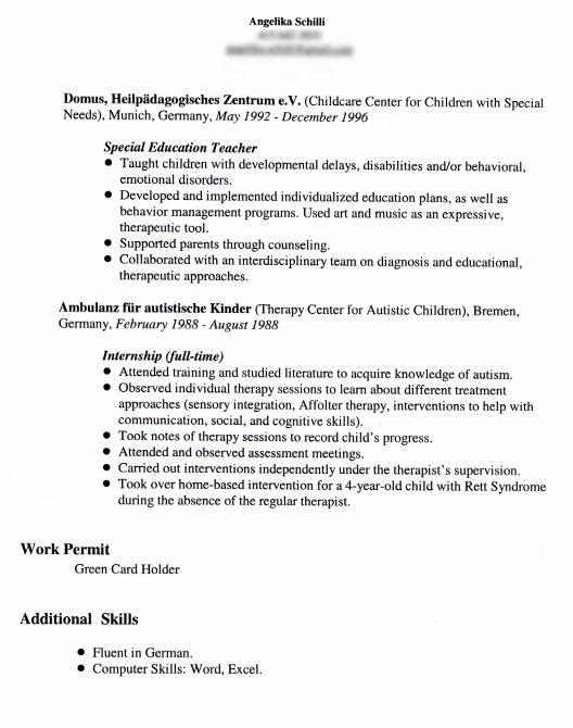 Auch in Amerika schneidet man den Lebenslauf auf die Stelle zu. Ich führe in der Regel nie meine zig Praktika auf, die ich schon mal gemacht habe, aber für die Autismusstelle erwähnte ich natürlich meine Zeit in der Ambulanz für autistische Kinder in Bremen. Auch ein Anschreiben gehört zu einer Standardbewerbung in Amerika dazu. Darin sollte der Bewerber darlegen, warum er für die Stelle besonders geeignet ist und was ihn an der Stelle reizt.
