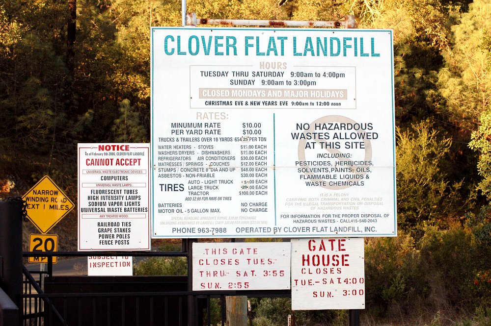 Dazu gibt es die sogenannten "Landfills" (Landfüllungen), Mülldeponien, die den Schrott während der bekanntgegebenen Öffnungszeiten gegen Gebühr entgegennehmen. In Abbildung 1 seht ihr die Gebührentabelle der Mülldeponie im Napa Valley, der noblen Weingegend nördlich von San Francisco. So darf man zwar 5 Gallonen (fast 20 Liter) Altöl kostenlos entsorgen, aber ein Kühlschrank kostet $15 und eine Matratze $12. Altöl nimmt übrigens auch unser Ölwechselfritze "Oil Changer" kostenlos entgegen, ob freiwillig oder weil gesetzlich dazu verdonnert, weiß ich nicht.