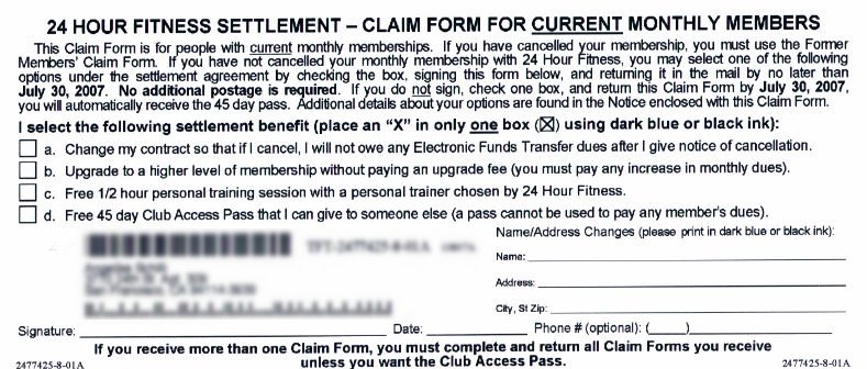 Im Fall von "24 Hour Fitness" kam es zu einer außergerichtlichen Einigung, wohl weil die Firma sich das Risiko eines Gerichtsverfahren sparen wollte. Wie ihr in Abbildung 2 sehen könnt, kann jeder Kunde jetzt aus vier möglichen Entschädigungsvarianten wählen, unter anderem bietet 24 Hours eine kostenlose halbe private Trainerstunde an! Das lassen wir uns gefallen.