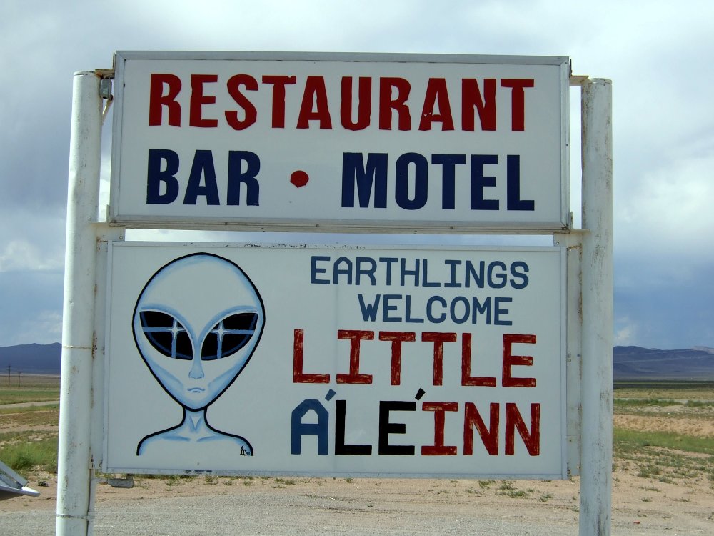Fährt man auf dem ET-Highway etwas weiter nach Norden, kommt man nach "Rachel", einem abgelegenen Nest mit ein paar Wohnwagen. Das Nest hieß früher Tempiute Village, Shady Grove und Sand Springs, wurde aber in "Rachel" umbenannt, als das erste Baby dort geboren wurde, das "Rachel Jones" hieß. In einer Baracke ist die Dorfkneipe, die "Little A'le'Inn" heißt. Der Name spielt auf "Aliens" an, also Außerirdische, und vor dem Laden parkt auch glatt für die Touristen ein Abschleppwagen mit einem UFO im Schlepptau!