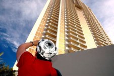Heutzutage ist das nicht mehr so einfach, aber hin und wieder findet man ordentlich Luxus für's Geld: Wir waren diesmal im MGM-Signature, in einem der drei neuen Türme, die ein paar hundert Meter hinter dem MGM-Koloss aus dem Boden gestampft wurden. Unsere Butze war nicht nur mit einer Küche ausgerüstet (eine Absurdität sondergleichen in Las Vegas) sondern hatte auch den abgefahrendsten Balkon, den ich je gesehen habe.