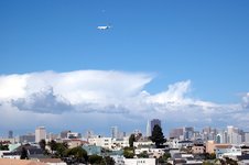 Auch der neue Airbus A-380 schaute in San Francisco bei einem seiner Testflüge vorbei. Der Zufall wollte es, dass das Riesenflugzeug zeitgleich mit den Blue Angels in der Stadt war. So kam irgendjemand auf die Idee, dass es doch nett wäre, wenn auch der Airbus einen Tiefflug über San Francisco absolvierte, kurz vor den Trainingsflügen der Blue Angels. Plötzlich tauchte also der Riesenvogel vor unserem Fenster auf und Michael, der gerade von zu Hause arbeitete, schoß munter ein paar Fotos. Schon Wahnsinn, was alles über unseren Köpfen herum fliegt.