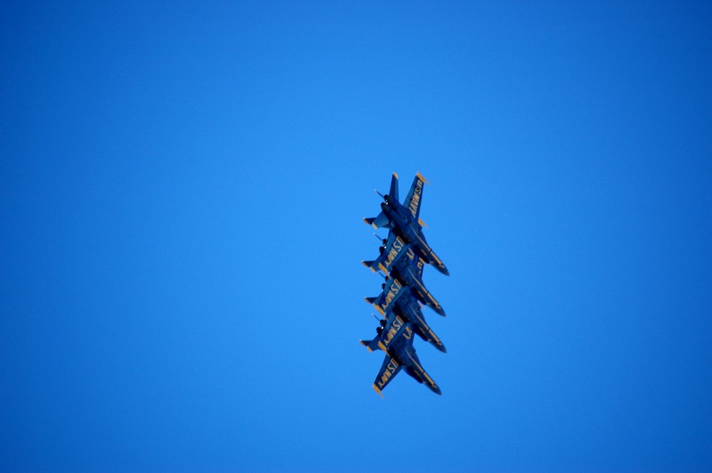 Denn während in Deutschland die Bundeswehr keinen guten Ruf hat und jeder über sie lästert, mag es der Amerikaner nicht, wenn man in irgendeiner Form gegen die Männer und Frauen in Uniform wettert. Die Blue Angels sollen durch ihre Flugakrobatik das Interesse an der Marine wecken und Freiwillige für die amerikanische Berufsarmee anlocken. Piloten in blauen Jets machen sich halt besser für Werbezwecke als Heimkehrer aus dem Irak.