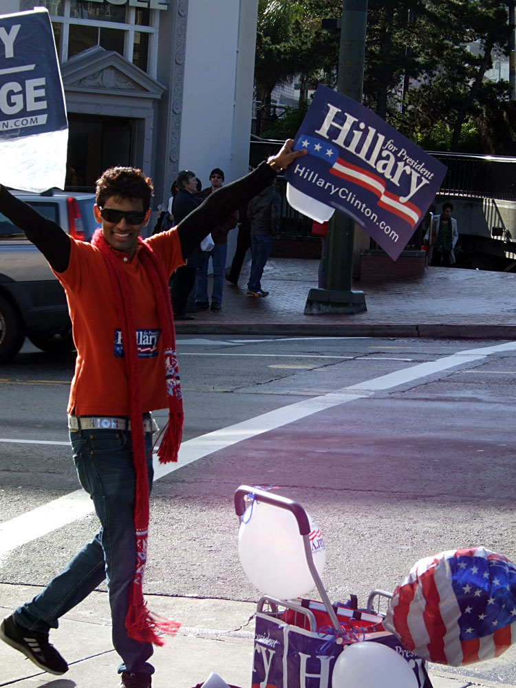 Vielen Wählern graut es davor, die Bush-Dynastie gegen eine Clinton- Dynastie auszutauschen, zumal keiner so recht weiß, welche Fäden Bill Clinton im Hintergrund zieht. Auch die historische Dimension ist vielen Wählern wichtig: Zum ersten Mal hat in der Geschichte der USA entweder eine Frau oder ein Schwarzer eine Chance auf das höchste Amt im Land. Und viele sehen in Barack Obama bereits die Reinkarnation von John F. Kennedy, so begeistert er die Massen, unabhängig von Hautfarbe, Alters, und Einkommen, wie es zumindest in San Francisco scheint.