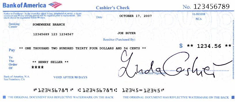 Für Autokäufe nutzt man deswegen sogenannte "Cashier's Checks" (Kassierer-Schecks). Der Käufer geht zur Bank (die hier in den USA auch am Samstag auf hat), verlangt vom Kassierer einen Cashier's Check über den ausgehandelten Autopreis und lässt ihn auf den Namen des Empfängers (!) ausstellen. Der auf dem Scheck stehende Betrag geht dann sofort vom Konto des Käufers ab. So ist sichergestellt, dass der Scheck nicht platzt. Der Scheck wird übrigens nicht vom Käufer, sondern vom Kassierer unterzeichnet. Beim Kauf händigt der Käufer dem Verkäufer den Cashier's Check aus, worauf der Verkäufer ihn bei seiner Bank einzahlt. Verlieren sollte man den Scheck nicht, er lässt sich nicht so einfach sperren. Es gab auch schon Betrugsfälle mit gefälschten Cashier's Checks, sodass der Verkäufer den Käufer manchmal bittet, mit ihm zur Bank zu gehen um den Scheck einzuzahlen. So flöge ein etwaiger Schmuh gleich auf.