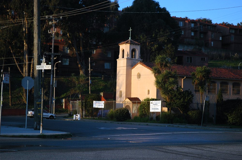 Obwohl heutzutage nicht mehr täglich Meldungen über Schießereien in Hunters Point in die Nachrichten kommen, kann man dort als Normalbürger praktisch nicht herumfahren. Der als Gefahrensucher bekannte Rundbriefreporter wagte sich natürlich dennoch mit Auto, Kamera und GPS hinein -- an einem Sonntagmorgen, an dem die schlimmsten Gauner ja bekanntlich noch schlafen. Einige waren dennoch da und schauten etwas verduzt. Ein Auto mit zwei finster dreinschauenden Gestalten drehte sogar um und folgte dem Reporterwagen, der aber seine Fotos schon gemacht hatte und mit Vollgas davonbrauste.